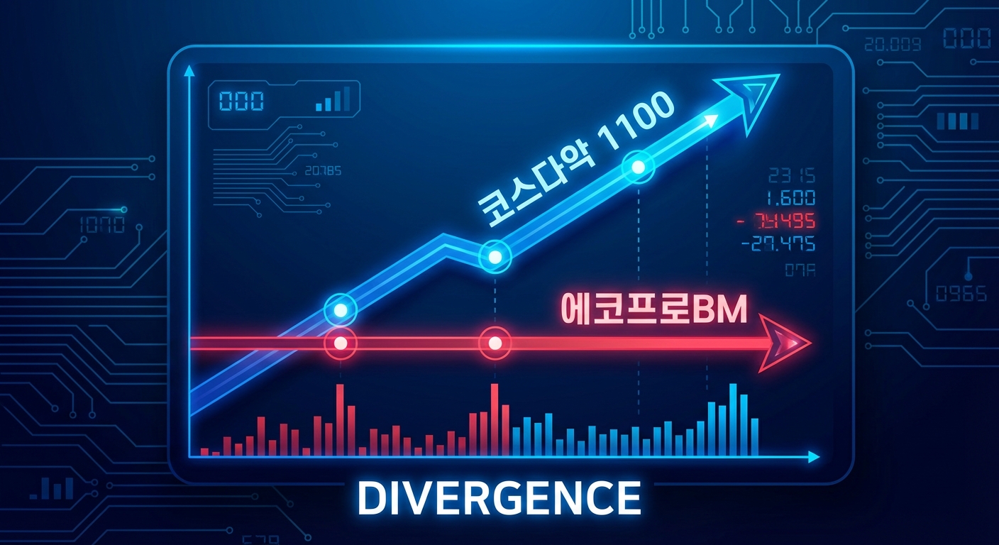 - 지수와 괴리된 주가: 코스닥 1100 돌파에도 불구하고, 에코프로비엠은 2차전지 섹터 전반의 소외 현상과 '고밸류 논란' 속에 갇혀 지수 상승분을 온전히 향유하지 못하고 있습니다.
